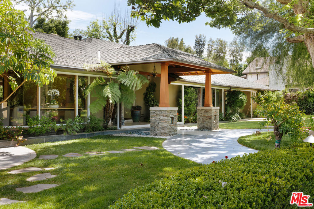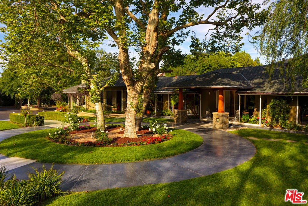 Tucked behind gates in Encino's coveted Music Row neighborhood, this extraordinary estate of legendary guitarist Steve Vai spans nearly two private acres, offering a rare blend of privacy, natural beauty, and creative history. The 10,000+ square-foot mid-century residence is thoughtfully designed with five ensuite bedrooms, expansive living and entertaining spaces, seamless indoor-outdoor flow, and an additional 3,000 square feet which include a studio, gym, pool house, and wine room. The home features original terrazzo pathways and rich acacia wood flooring, a chef's kitchen with cherry wood cabinetry, Carrara marble countertops, skylight and Kokomo glass sliders that open to an inviting indoor-outdoor patio complete with BBQ and pizza oven- ideal for entertaining. At the heart of the property lies the legendary Harmony Hut, a world-renowned recording studio designed and built by Steve Vai with meticulous attention to acoustics, materials, and sonic precision. Revered by musicians across the globe, it stands as a true creative sanctuary where decades of music have been conceived and brought to life. The estate's grounds unfold as a private retreat, featuring a pool, championship tennis court, and multiple outdoor living areas. Lush landscaping and mature trees create a sense of tranquility, while the location offers convenient access to the city's most desired destinations More than a home, this is a one-of-a-kind compound and a sanctuary of inspiration, offering a rare opportunity to own a work of art and a piece of modern music history.